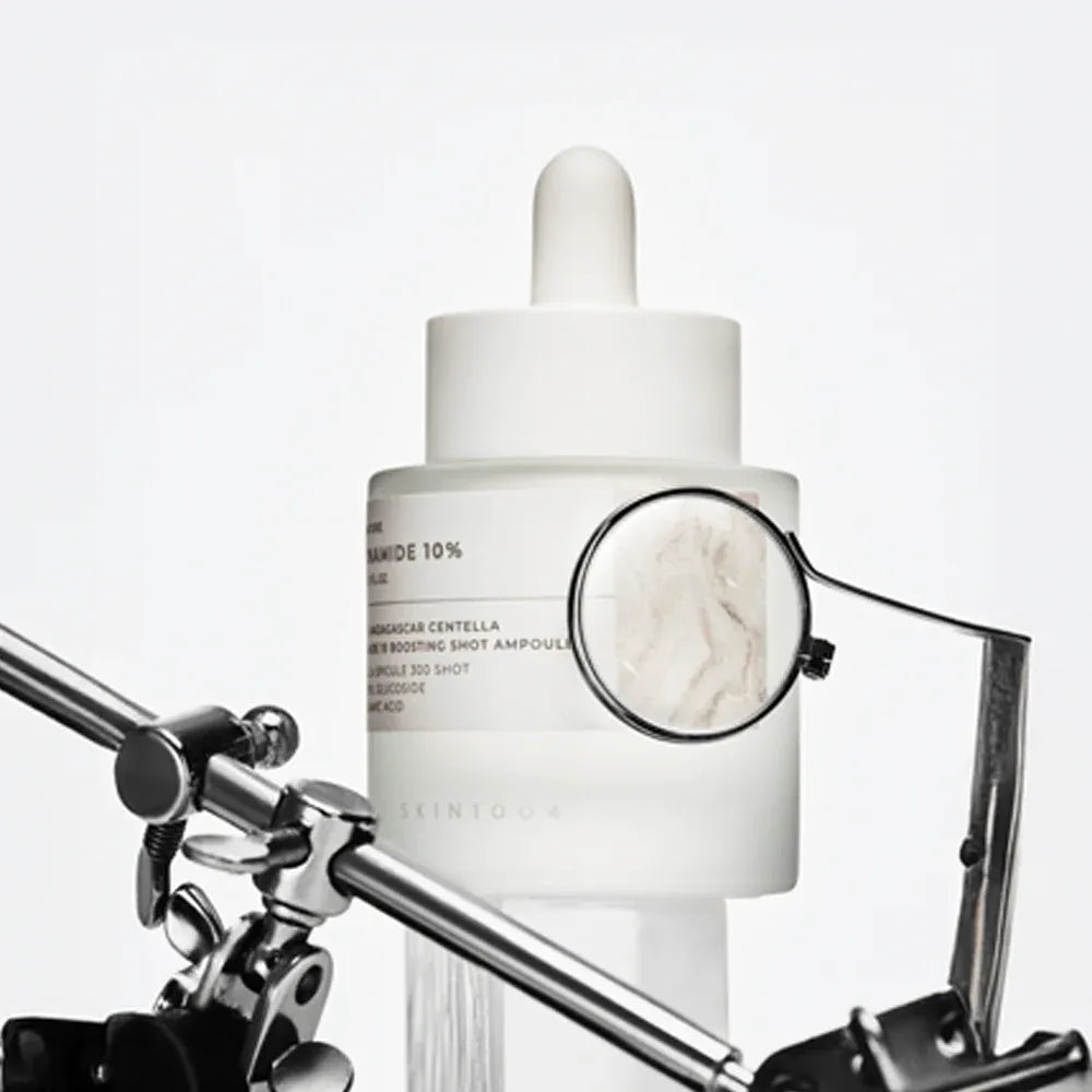 10% نياسيناميد : يقلل من إنتاج الدهون، ويخفف البقع الداكنة، ويحسن مرونة الجلد.